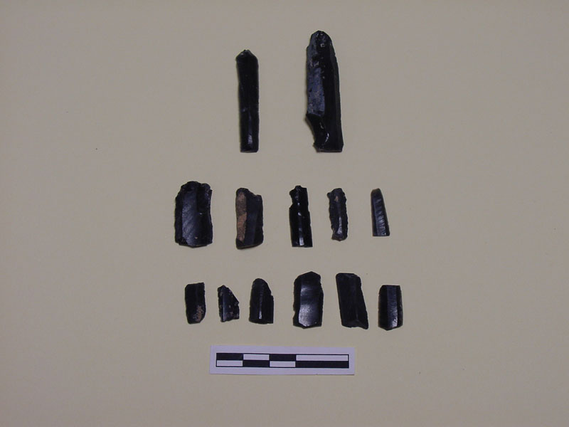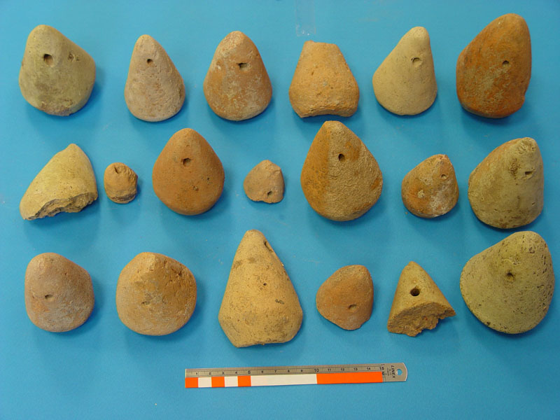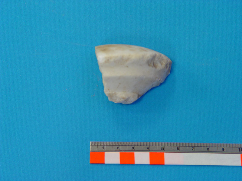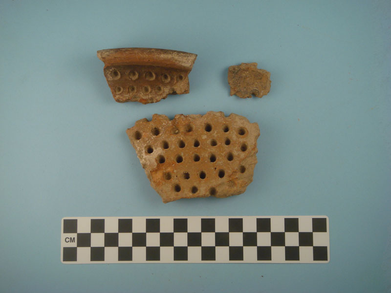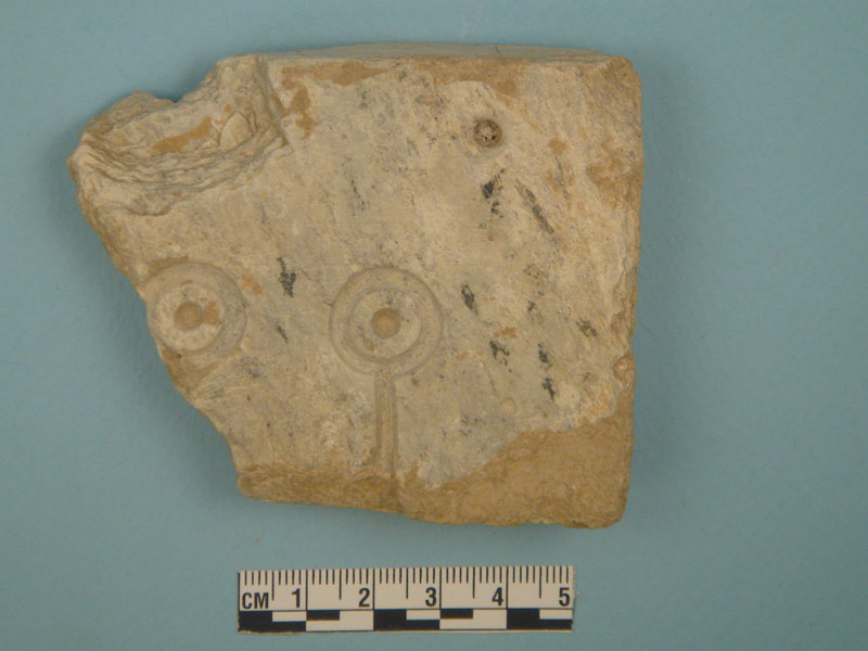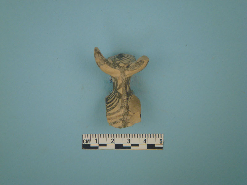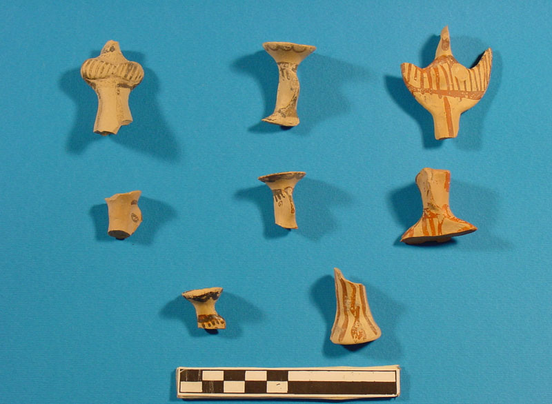 Small finds from this sector included both artifacts and ecofacts, among which many zoomorphic and anthropomorphic Mycenaean figurines; Mycenaean stone, bone or clay beads and stone 'buttons'; obsidian blades or core fragments; metal objects (including a lead ring); stone grinders and clay loom-weights; several small Mycenaean fresco fragments; samples of waterproof bonding lime plaster (plesia); a Hellenistic coin; shell, burnt and unburned animal bones; roof tiles, and abundant pottery, mainly of the LH IIIB period, including cookware (cooking pots, frying pans and grill clay bases).