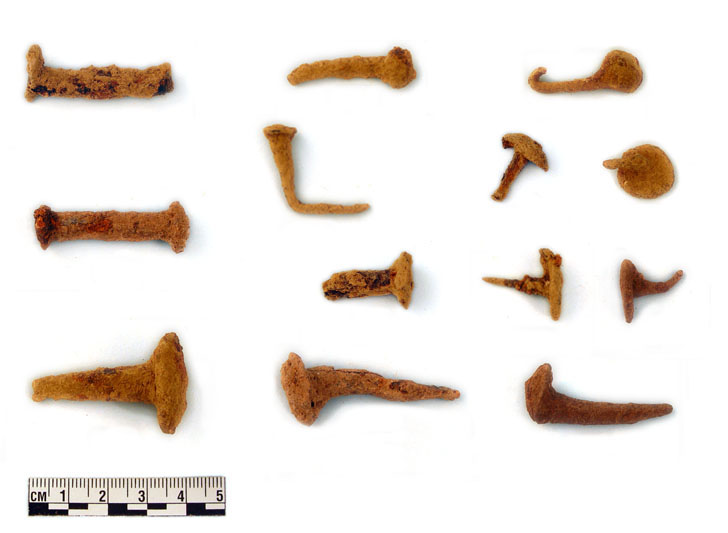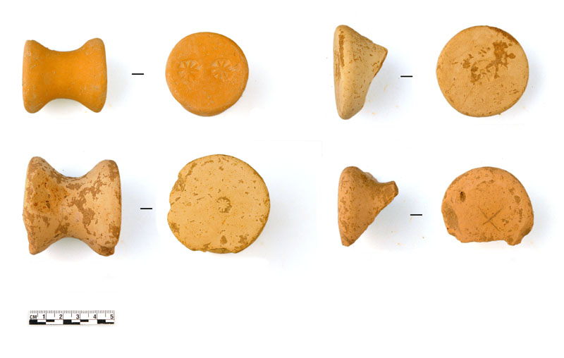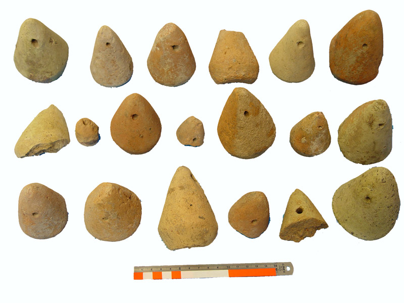The area west of Wall B appears to contain stratified Mycenaean and Geometric contexts with very limited infiltration of the red fill. The upper fill yielded mixed pottery (Mycenaean to Archaic) and small finds (lead weights and sheet, coins, iron nails and chisel, clay loom weights and spools) down to the level of a cobbled surface overlying a thick stone pile (D4-XCVII-31). Deeper fills, however, contained Mycenaean and Geometric pottery, Mycenaean buttons and figurines, stone tools (querns, scrapers, obsidian blades), and an unfinished lentoid seal stone. A test pit dug alongside the western face of the wall (D4-XCVII-31/41/51) revealed part of the foundation trench of the wall (D4-XCVII-41), undisturbed stratified layers at its base, sealed at places by collapsed and melted mud-brick, and a burnt deposit (destruction layer?) containing charcoal, melted lead sheet and door hinges, a silver ring, Mycenaean and PG pottery (D4-XCVII-31). Another part of the foundation trench was located at the base of the eastern face of the wall indentation (D4-XCVII-52) which yielded diagnostic LH IIIC and PG sherds. The joints in the lower courses of the western face of the wall also yielded LH IIIC/PG sherds, whereas Geometric sherds were retrieved from joints of the upper courses at places where the wall must have undergone later modifications and repairs, as indicated by marked differences in the wall construction and a later trench cut very high into the red fill to expose the eastern face of the wall and facilitate repairs on its upper part (D4-XCVII-31).