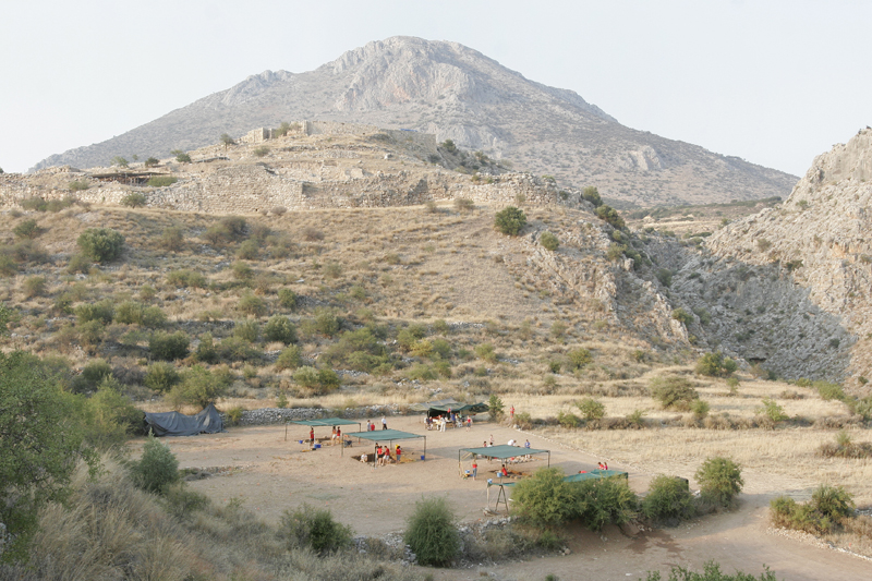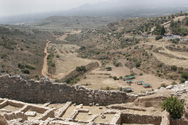 Ever since the commencement of the archaeological investigation of Mycenae by Heinrich Schliemann in 1874, excavators have focused mainly on the citadel and the palace itself, whereas fieldwork outside the walls has been limited to cemeteries stretching farther on the hill slopes around Mycenae, and to few buildings of the settlement once surrounding the citadel (Oil-Merchant complex, Panagia group, House of Lead; House of the Wine Merchant and Cyclopean Terrace Building, Petsas House, Plakes House).